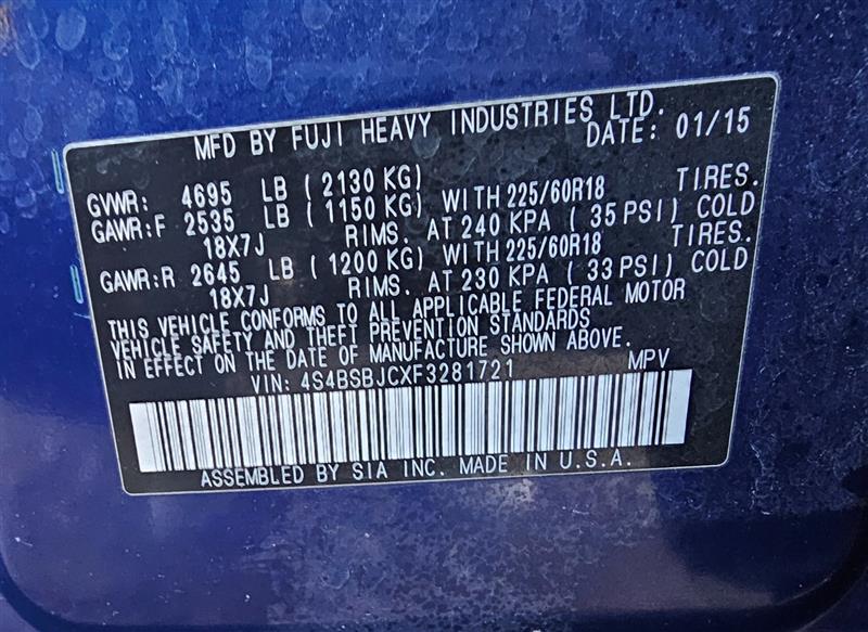 2015 SUBARU OUTBACK 2.5I LIMITED